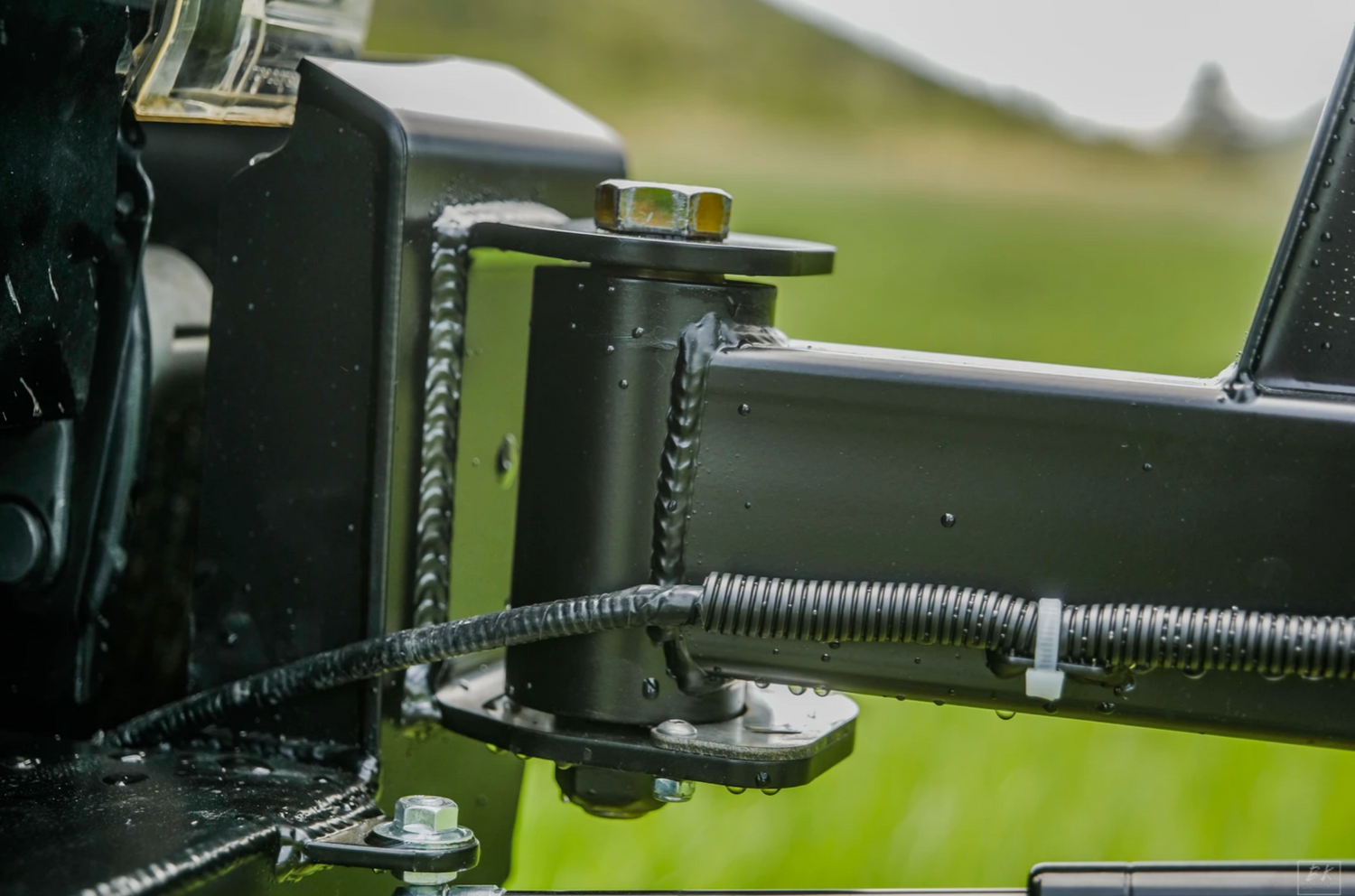 - License plate flips up for access to the receiver hitch and trailer wiring connection.