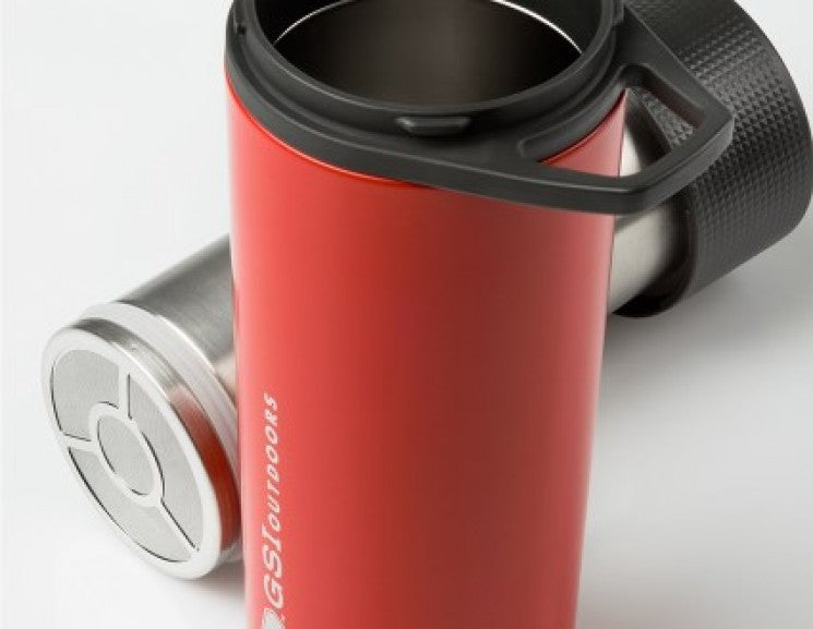 The GSI Commuter Java Press gives you that amazingly bold flavor of freshly pressed coffee or tea, in a convenient travel mug.  This evolved version of the French Press replaces the plunger and sieve with a perforated inner mug. That saves you from having to remove parts or pour into another container and adds an insulating inner wall to keep your brew hot. The ultra-rugged stainless steel body can take the abuse that life on the road can sometimes bring.