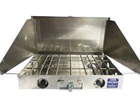 All Partner Steel stoves are made from high grade aluminum and hand welded by their expert, professional welders. The grills are stainless steel and the gas manifolds are brass. Other than the burners, the entire stove is designed to remain rust-free and very low maintenance, providing years of service even in the most harsh environments. All stoves come with regulator and hoses.
