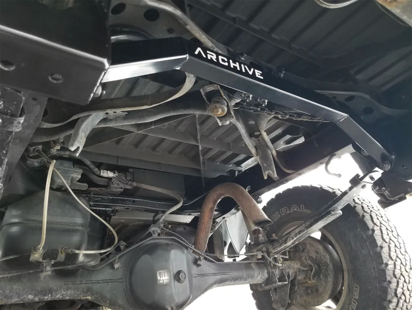 Note: Installing a cross tube requires relocating the spare tire from its stock location.