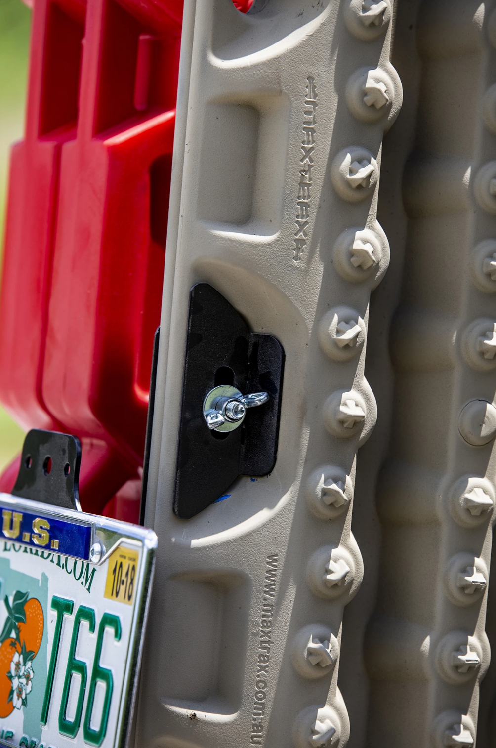 • Our Rotopax/Maxtrax Combo Mount is ideal for stacking up to 2, 4 Gallon Rotopax and 4 Maxtrax stacked while maintaining space for our vertical Hi-Lift Mount.