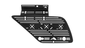 A new way to mount your essential gear for easy access and more storage on your 4th Gen 4Runner. Made out of 3/16 aluminum, this lightweight yet strong panel allows you to add convenient mounting options to the side of your vehicle. Perfect to mount your recovery gear, fuel, water, shovel, axe, first aid kit, or nearly anything that can be bolted or strapped down. Compatible with most standard awnings using Sherpa Awning Mounts. Designed to match the window shape of your 4Runner, this bolts to your Princeton rack at the top and suctions to the window at the bottom. No drilling or other modifications are necessary.