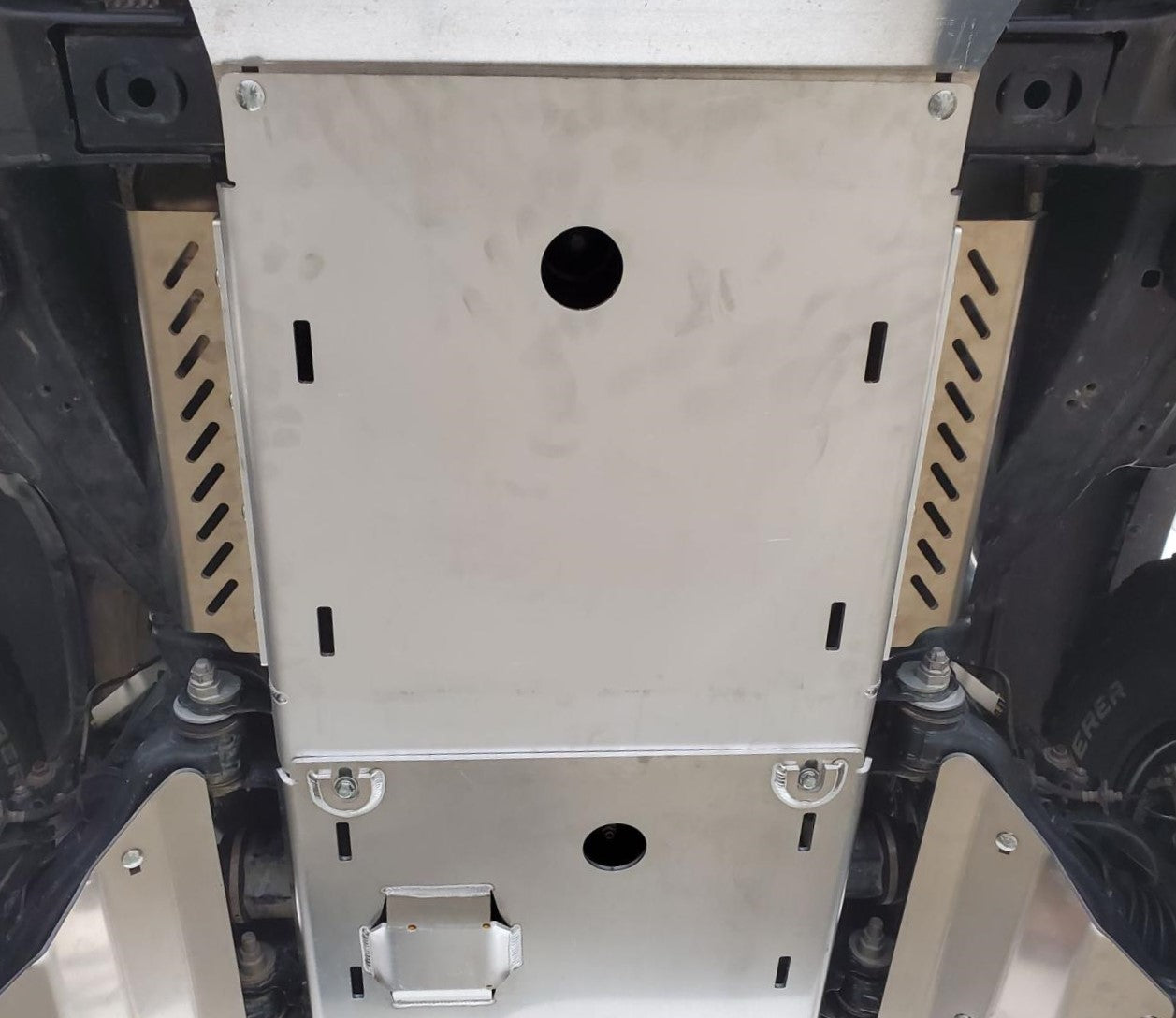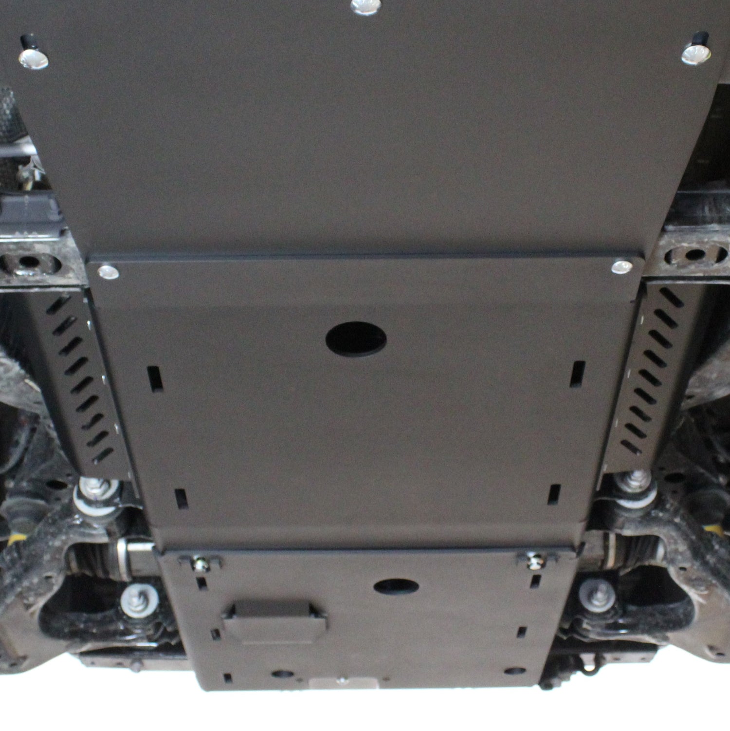 Underbody damage is costly. Protect your investment with the high quality transmission skid plate and catalytic guards by RCI Metalworks. Ties in seamlessly with RCI front and transfer-case skid plates and compatible with the Toyota TRD PRO engine skid plate.