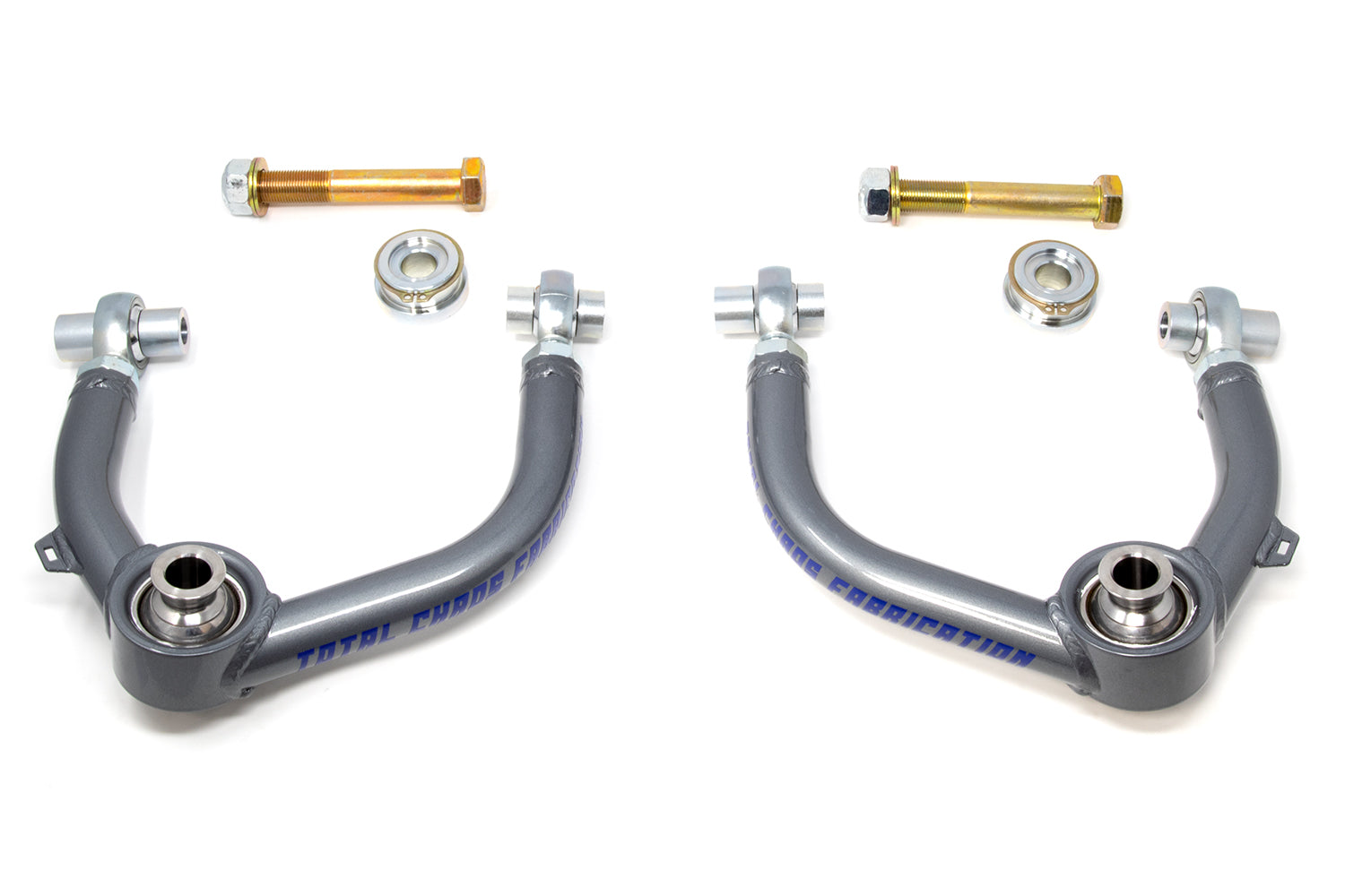 TC upper control arms combined with extended length coil over shocks will allow for up to 1” of additional wheel travel. Designed to maintain factory alignment specs on vehicles with 1.5"-3" lift kits. 4130 chromoly tubular upper control arms are 100% bolt on and hand crafted in the U.S.A.