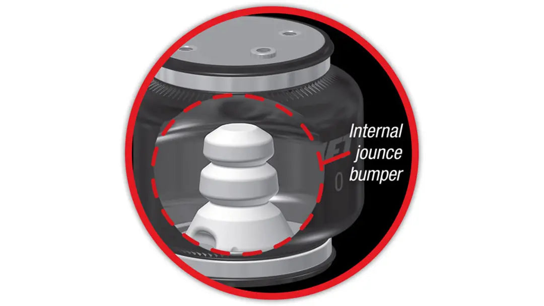 - Internal Jounce Bumper: This is the game-changer. It allows the air spring to function safely and prevents damage even if the bag pressure drops to 0 PSI (Note: Compressor systems usually maintain 5 PSI). It provides an extra layer of shock absorption when hitting large bumps or driving unloaded on rough roads.