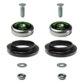 Original Coil Conversion Kit 2.0 by Metal-tech 4x4. In late 2007 Metal-tech 4x4 invented the Original bolt-in conversion kit for Lexus GX's. Now, 15yrs later we have updated the design with an easier to install and higher performance machined aluminum body and precision machined custom coil isolator. The key difference is the top of the new aluminum centering puck featuring a recessed countersunk bolt mount, creating a flat striking face for the secondary spring (cone thing inside the top of the coil spring). This new flush face keeps the bolt from damaging the secondary spring on contact. In addition, the hardware included in the kit features a slim nylock (aircraft nut) that is much easier to install than the previous design. The kit is 100% CNC machined in the USA from US made material. The isolator used in the Metal-tech 4x4 kit was updated in 2022, we eliminated the rubbery off the shelf poly isolator. Soft poly isolators can be too soft for some springs pigtails, leading them to crack the spring. We moved to a CNC machined isolator cut from UHMW (Ultra High Molecular Weight Polyethylene). This is a high-performance aerospace plastic that is perfect for this application. By custom machining the parts in house at Metal-tech 4x4, we were able to increase the flange size to better support the bottom of the coil spring. Most importantly with the UHMW machined isolator is the springs pigtail is properly supported with no chance of it cracking the spring.