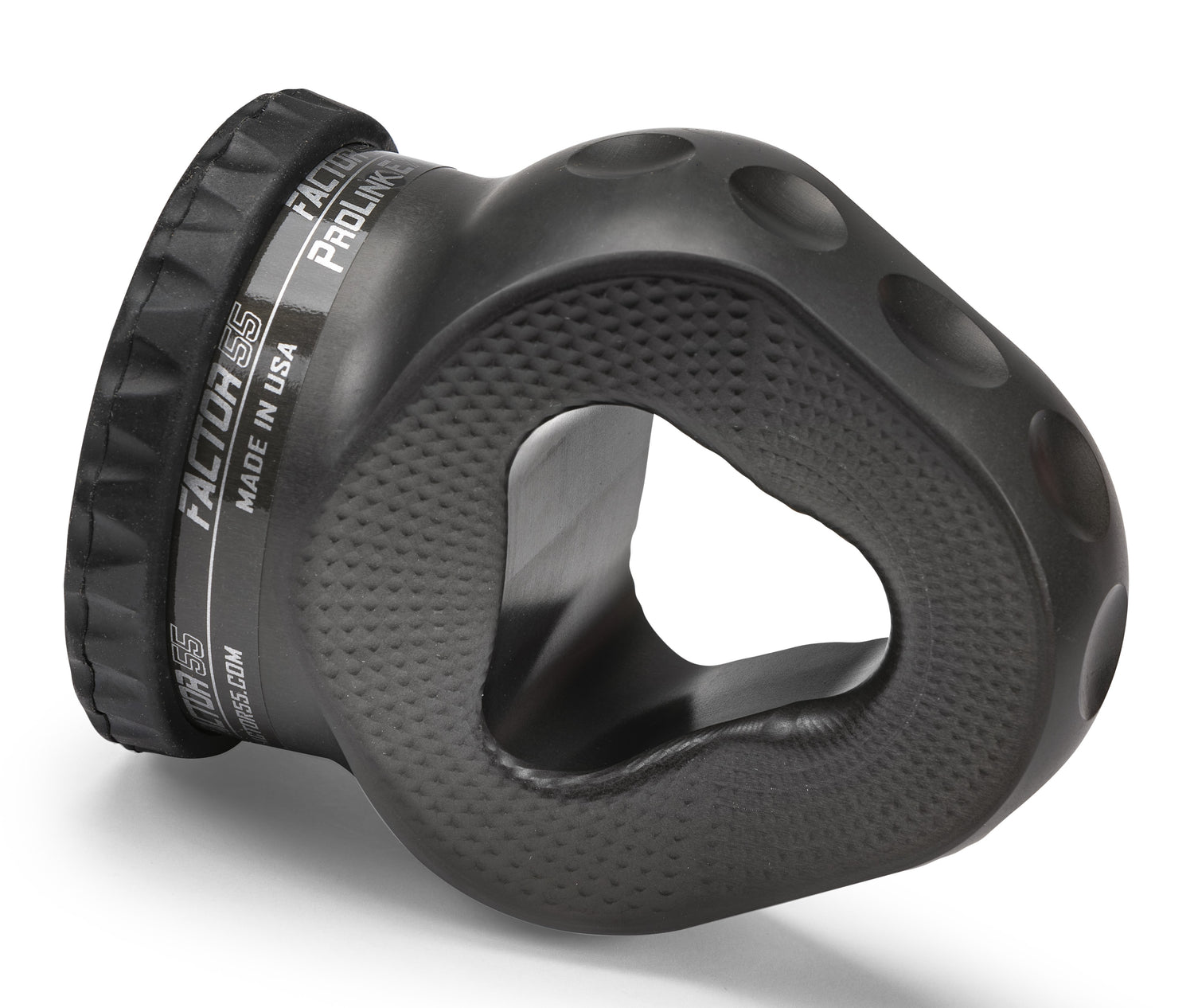 Winch Cable Shackle Mount; Prolink E; Fits 3/4 Inch Shackles/ D-Rings; Fits 3/8 Inch Steel Cable/ Synthetic Winch Rope; 16000 Pound Load Capacity; Connects To Pin or Bow End of Common 3/4 Inch Screw Pin Shackles Or Pin Ends of 7/8 Inch and 1 Inch Screw Pin Shackles; Powder Coated; Aluminum; With EPDM Rubber Guard And 5/8 Inch Diameter Grade 5 Titanium Double Shear Pin